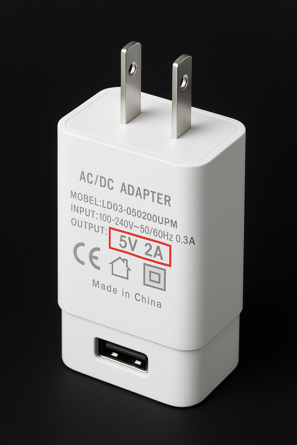 - 建議使用輸出規格為 5V / 2A (10W) 的充電器。